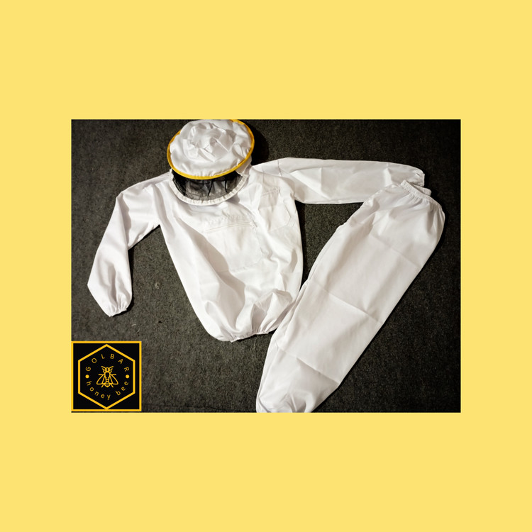 لباس زنبورداری دوتکه کلاه دار دارای پارچه مناسب و دوخت مطمئن و دارای استاندارد مورد نیاز برای فرد استفاده کننده از آن می باشد. در طراحی و دوخت این لباس از نظر و هم فکری زنبورداران با تجربه برای هرچه بهتر و راحتر شدن آن استفاده شده است.
